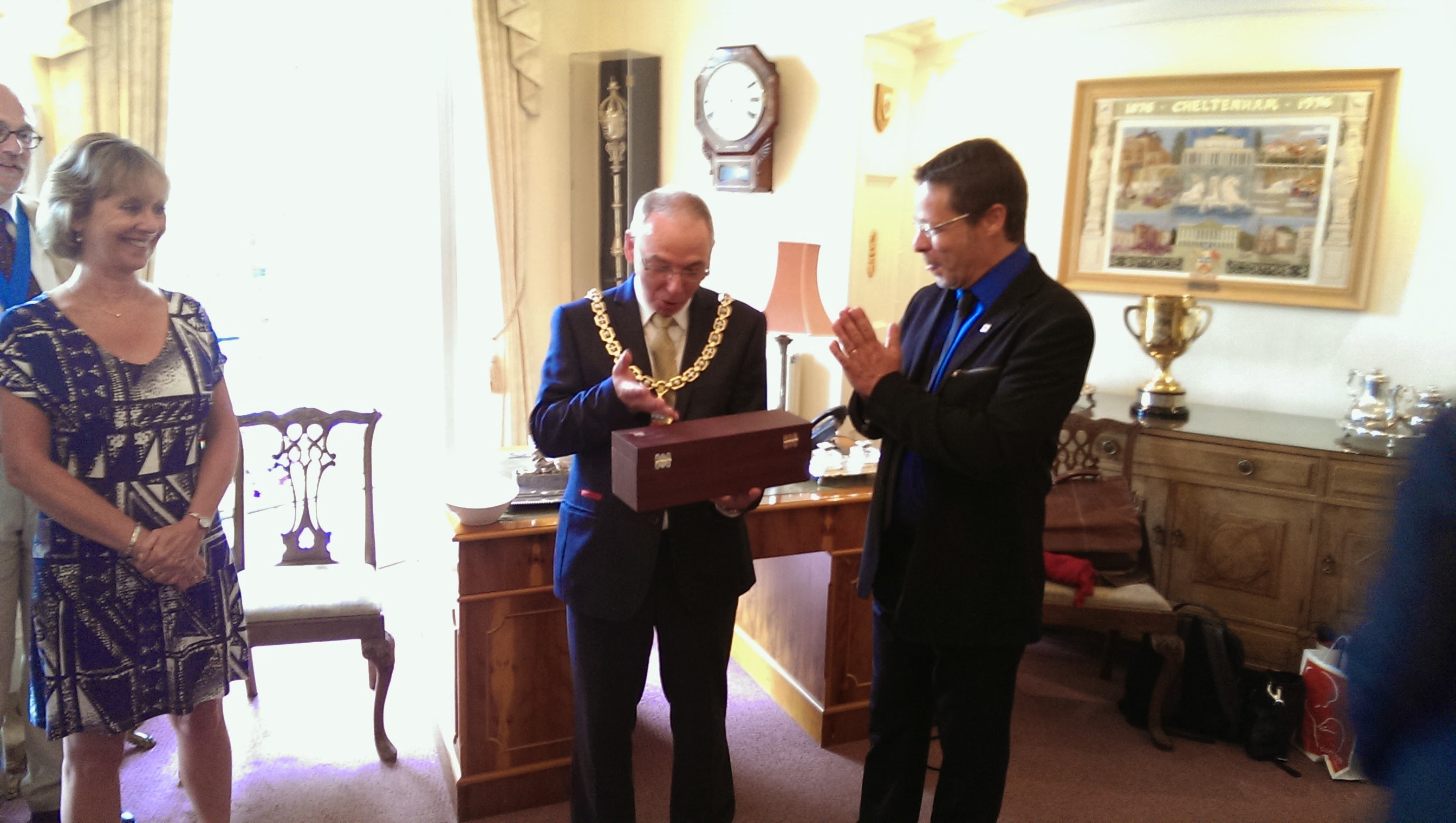 From 4-7 July 3 representatives from Göttingen and 5 from Annecy were in Cheltenham for the weekend to commemorate WW1. The delegations, led by the Deputy Mayors of each town, attended the WW1 Centenary concert at the Town Hall as part of the Music Festival and visited a WW1 exhibition situated in Cheltenham’s first WW1 VA hospital in Lansdown Road. At a reception at The Wilson, a video was launched depicting WW1 monuments from Cheltenham and its twin towns, which has been put together with help from Cheltenham Camera Club.